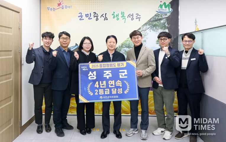 미담타임스 김준완 기자 | 성주군은 국민권익위원회 주관 ‘2025년 공공기관 종합청렴도 평가’에서 2등급을 받아 4년 연속 종합청렴도 2등급을 달성했다.