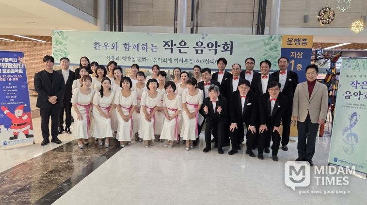 미담타임스 김교환 기자 | 대구광역시 공무원합창단은 12월 23일 계명대학교 동산병원에서 봉사연주를 열어 입원 환자, 보호자, 그리고 의료진에게 연말의 따뜻한 위로와 희망의 메시지를 전했다.