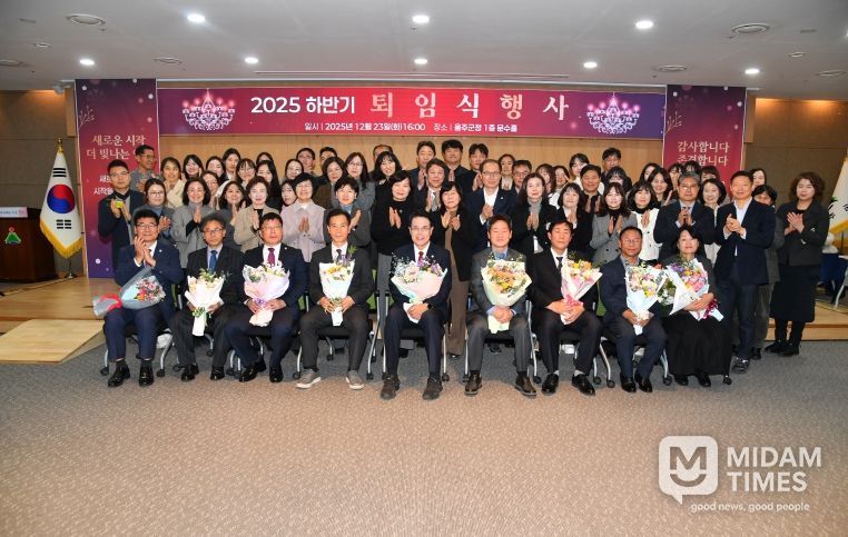 미담타임스 김준완 기자 | 울산 울주군이 23일 군청 문수홀에서 이순걸 군수와 퇴임 공무원 및 가족, 동료 직원 등이 참석한 가운데 2025년 하반기 공직자 퇴임식을 개최했다.