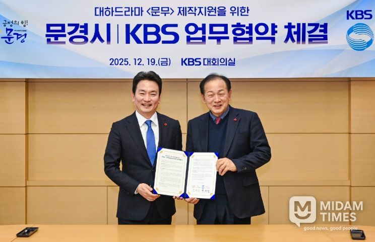 미담타임스 김준완 기자 | 문경시와 KBS는 지난 19일 KBS홀에서 사극 ‘문무’ 제작 지원 및 촬영 협력을 위해 신현국 문경시장과 박장범 KBS 사장이 업무협약을 체결했다.
