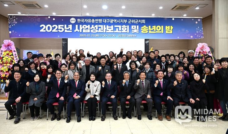 미담타임스 김준완 기자 | 한국자유총연맹 대구군위군지회는 지난 23일 군위군민회관에서 자총 군위군지회 회원들과 관계자 등 100여 명이 참석한 가운데 “2025년 사업성과 보고회 및 송년의 밤”을 성황리에 개최했다.