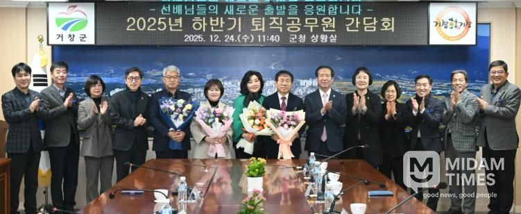 미담타임스 김교환 기자 | 거창군은 지난 24일 군청 상황실에서 퇴직을 앞둔 공무원들의 공직생활의 노고와 헌신에 대한 감사를 전하기 위해 ‘2025년 하반기 퇴직공무원 간담회’를 개최했다.