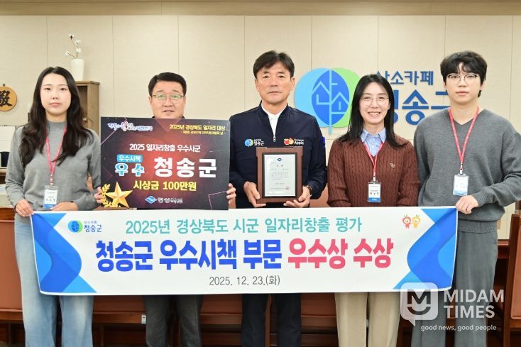 미담타임스 김준완 기자 | 청송군은 지난 3월 발생한 대형 산불 피해 극복과 지역사회 안정 회복을 위한 노력을 인정받아 ‘2025년 경상북도 시·군 일자리창출 추진실적 평가’에서 우수시책 부문 우수상을 수상했다.