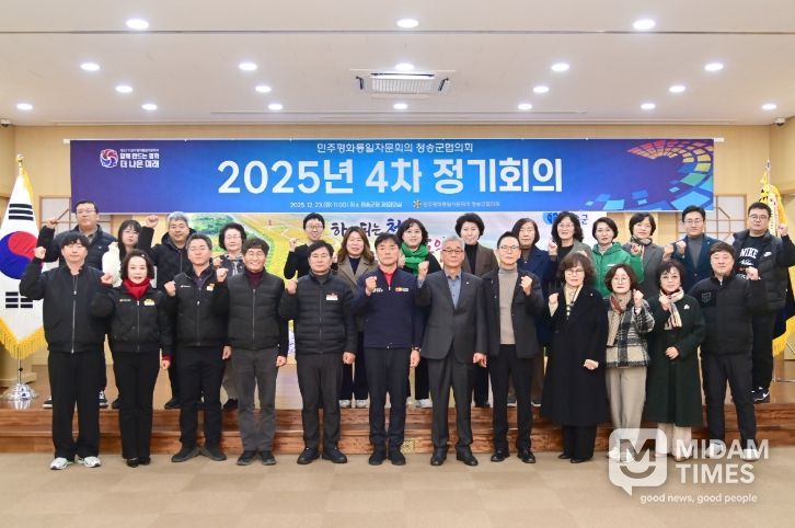 미담타임스 김준완 기자 | 민주평화통일자문회의 청송군협의회(회장 신선희)는 지난 23일 청송군청 제1회의실에서 대행기관장인 윤경희 청송군수, 자문위원 등 30여 명이 참석한 가운데 ‘화해·협력의 남북관계 재정립을 위한 정책 방향’이라는 주제로 2025년 4분기 정기회의를 개최했다.