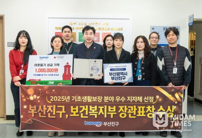 미담타임스 김교환 기자 | 부산 부산진구는 보건복지부 주관 ‘2025년 기초생활보장 분야 평가’에서 우수 지자체로 선정되어 지난 22일 보건복지부 장관 표창을 수상했다고 밝혔다.