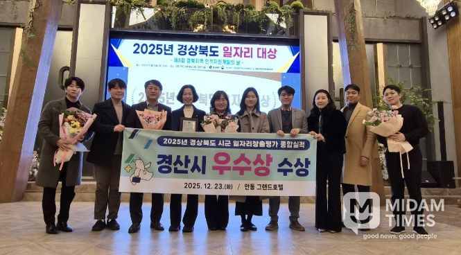 미담타임스 김준완 기자 | 경산시는 23일 안동 그랜드호텔에서 열린'2025년 경상북도 시·군 일자리 창출 추진실 적 평가'에서 종합 실적 우수상을 수상했다.