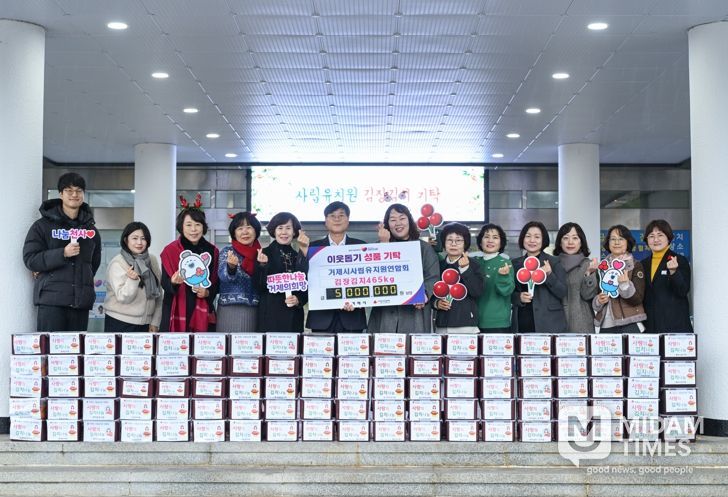 미담타임스 김교환 기자 | 거제시사립유치원연합회(회장 김현숙)는 지난 24일, 직접 손수 담근 김장김치 5kg 96박스(500만 원 상당)를 취약계층 지원을 위해 거제시에 기탁했다.