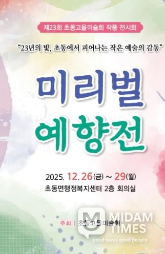 김영근 초동면장은 “미리벌 예향전은 예술이 특정 공간에 머무르지 않고, 지역과 일상 속으로 스며드는 뜻깊은 전시다”라며 “이번 전시를 통해 지역 주민들이 예술의 따뜻한 울림을 가까이에서 느끼고, 초동면이 문화와 예술이 살아 숨 쉬는 고장임을 함께 공감하는 시간이 되길 바란다”라고 전했다.
