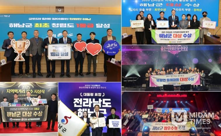 미담타임스 정인화 기자 | 해남군이 2025년 한 해 동안 총 110건의 기관표창을 수상하며 역대 최다 수상 기록을 달성했다.