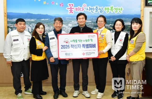 미담타임스 김준완 기자 | 경산시는 24일 대한적십자사 경북지사에 2026년도 적십자 특별회비 100만 원을 전달하며 적십자 회비 모금 운동에 동참했다.