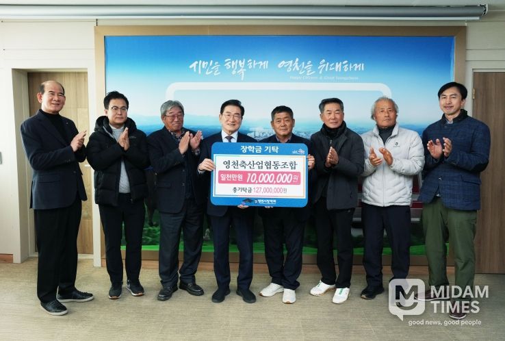 지역 축산업 부흥을 위해 1954년 발족한 영천축산업협동조합은 축산 농가의 현안 해결과 농장 선진화에 앞장서며 농가 소득 증대에 기여해 왔다. 또한 2003년부터 지역사회 발전과 인재 양성을 위해 장학금을 꾸준히 기탁하고 있다. 김진수 조합장은 “지역 사회와 함께 성장하는 영천축산농협이 될 수 있도록 앞으로도 영천시장학회와 장학사업에 지속적인 관심을 갖겠다”고 소감을 전했다.