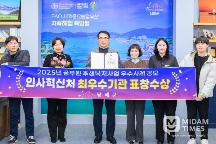 미담타임스 김교환 기자 | 남해군이 인사혁신처장이 주최한 2025년 공무원 후생복지 우수사례 공모에서 전국 최우수 기관으로 선정됐다.