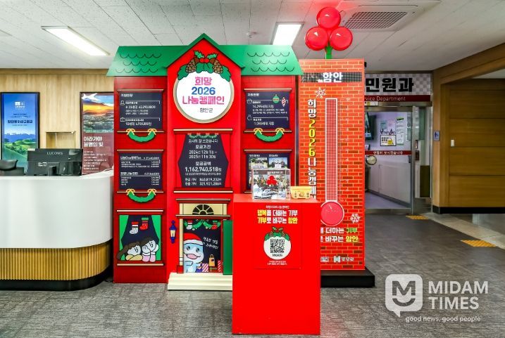 미담타임스 김교환 기자 | 함안군은 ‘희망2026 나눔캠페인’이 사랑의 온도탑 100도를 달성하며 지역사회 나눔문화 확산에 뜻깊은 성과를 거뒀다고 29일 밝혔다.