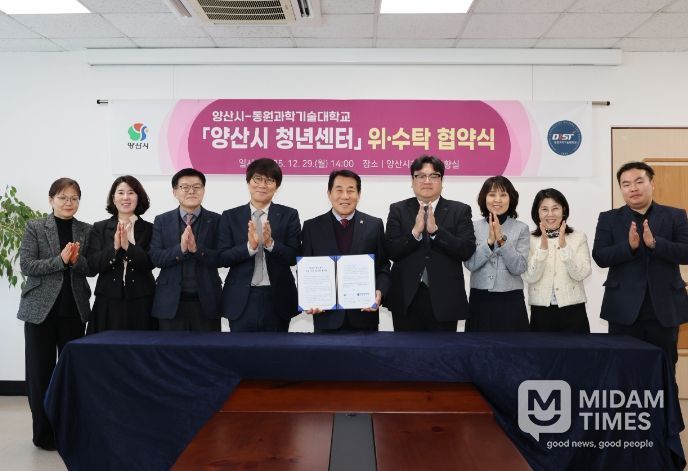 미담타임스 김교환 기자 | 양산시는 지난 29일 시청 상황실에서 동원과학기술대학교 산학협력단(단장 차진훈)과 ‘양산시 청년센터’ 운영을 위한 위·수탁 협약을 체결했다고 밝혔다.