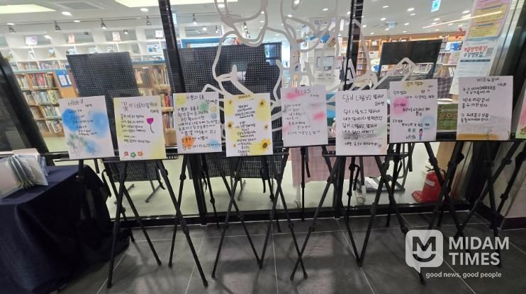 전시 작품은 ▲‘AI드로잉 애니메이션 제작’ 프로그램에서 캔바(CANVA)를 활용해 제작한 동화책, ▲‘개성만점 손글씨’ 프로그램에서 자작시와 필사를 통해 완성한 시화 작품, ▲‘쓰기로 표현력 키우기’ 프로그램에서 고사성어를 주제로 제작한 팝업책 등이다.