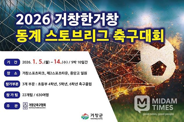미담타임스 김교환 기자 | 거창군은 오는 새해 5일부터 14일까지 10일간'2026 거창한거창 축구 동계 스토브리그'를 거창스포츠파크, 제2스포츠타운, 중앙고등학교 일원에서 개최한다. 거창에서 새해 스포츠 행사로 열리는 이번 스토브리그는 한겨울 거창을 뜨거운 축구 열기로 채울 전망이다.