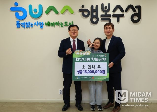 수성구청은 기탁받은 성금을 ‘희망수성 천사계좌’에 적립해 관내 취약계층을 위한 복지사업에 사용할 계획이다.