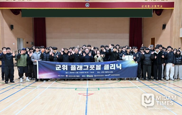 미담타임스 김준완 기자 | 대구광역시 군위군과 대한미식축구협회는 12월 30일, 군위 중·고등학교 강당에서 ‘군위군민과 함께하는 플래그풋볼 체험 행사’를 성황리에 개최했다고 밝혔다.