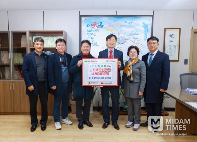 미담타임스 김교환 기자 | 성탄절을 앞둔 지난 24일, 한국전기공사협회 대구광역시회(회장 이정구)는 서구청을 방문해 이웃돕기 성금 450만 원을 기탁했다.