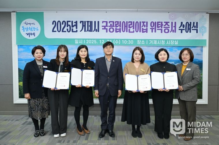 미담타임스 김교환 기자 | 거제시는 12월 31일, 시장실에서 국공립어린이집 수탁자로 선정된 어린이집에 위탁계약증서를 수여했다.