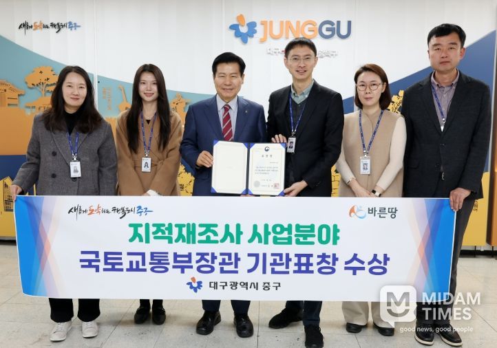 미담타임스 김교환 기자 | 대구 중구는 ‘2025년도 지적재조사사업 분야’ 추진 유공으로 국토교통부 장관 기관 표창을 받았다.