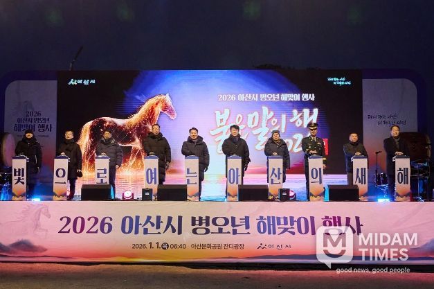 미담타임스 정인화 기자 | 아산시는 1월 1일 오전 아산문화공원 잔디광장에서 ‘2026 병오년(丙午年) 해맞이 행사’를 열고, 시민과 함께 희망찬 새해의 첫 해를 맞이했다.