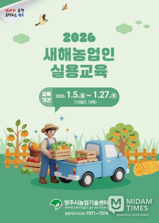 미담타임스 김준완 기자 | 영주시는 오는 1월 5일부터 27일까지 이상기상에 대응하고 경쟁력 있는 농업 기반을 마련하기 위해 ‘2026년 새해농업인 실용교육’을 실시한다.