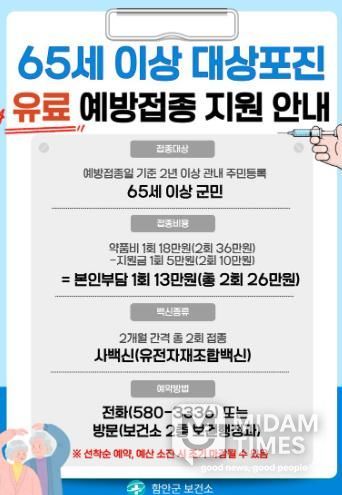 미담타임스 김교환 기자 | 함안군보건소는 2026년 대상포진 예방접종을 1월 2일부터 예약 접수하며, 접종 실시는 2월부터 진행한다고 밝혔다.