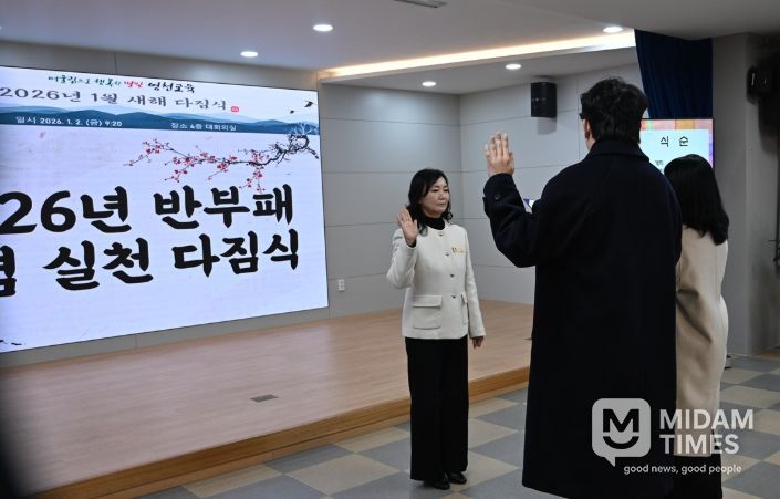 이번 새해 다짐식은 전입 공무원 소개, 우수공무원 표창 수여, 직원 생일 축하, 청렴실천 서약식, 교육장 신년사 순으로 진행됐다.