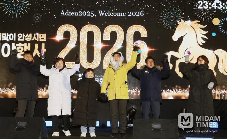 미담타임스 정주환 기자 | 안성시가 후원하고 안성문화원이 주관한 '2026년 새해맞이 안성시민 제야행사'가 12월 31일 밤 안성맞춤아트홀 야외무대에서 시민들의 큰 호응 속에 안전하고 차분하게 마무리됐다.