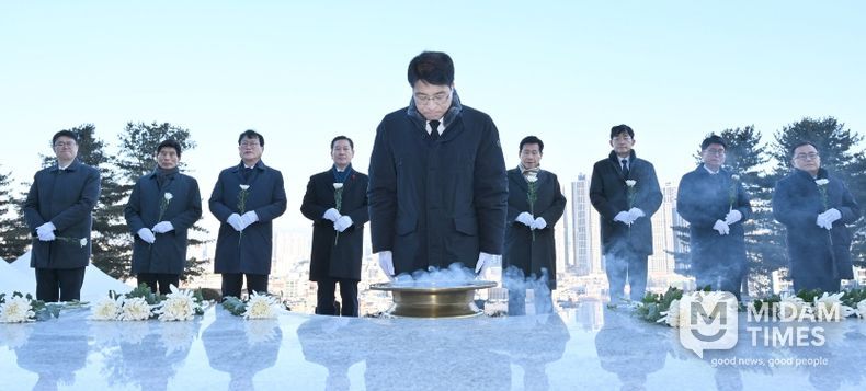 미담타임스 김교환 기자 | 김정기 대구광역시장 권한대행 행정부시장은 2026년 병오년 새해를 맞아 1월 2일 오전 9시, 시 간부 공무원 50여 명과 함께 순국선열과 호국영령들의 충의와 위훈을 기리고 대구발전의 결의를 다지기 위해 앞산 충혼탑에 신년 참배를 실시했다.