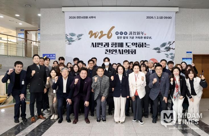 미담타임스 정인화 기자 | 천안시의회는 1월 2일 오전 9시, 의회 1층 로비에서 2026년 시무식을 열고 새해 업무를 본격적으로 시작했다.