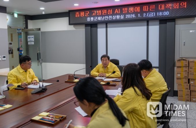 미담타임스 조혜리 기자 | 충북 증평군이 지역 내 농가에서 고병원성 조류인플루엔자(AI)가 발생함에 따라 긴급회의를 열고 방역 대응 강화에 나섰다.