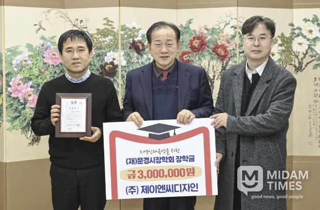 미담타임스 김준완 기자 | (재)문경시장학회는 2일 ㈜제이엔씨디자인이 지역인재 육성을 위해 300만 원의 장학금을 문경시장학회에 기탁했다고 밝혔다.