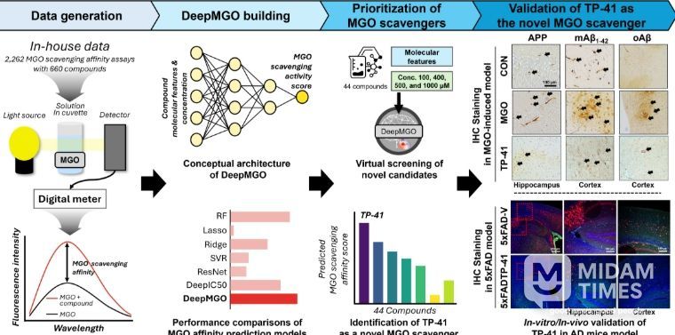 해당 모델을 활용한 AI 스크리닝으로 연구팀은 기존 트립토판 계열 물질보다 혈뇌장벽(BBB) 투과율이 우수한 신규 유도체 ‘TP-41’을 발굴하는 데 성공했다. TP-41은 MGO를 직접 소거하는 기전을 통해 독성을 낮추고, 뇌로의 전달 효율을 높인 것이 특징이다.