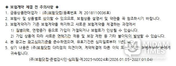 참고로 병력을 가지고 있는 사람이라면 유병자보험 상품을 고려해 볼 수 있다. 유병자보험은 간편심사보험이라 칭하는데, 유병력자에 대한 가입조건이 보다 완화된 상품인 만큼 유병자라면 검토해 보는 것이 권장된다. 단, 가입 시 고지의무 준수는 필수적이므로 추후에 불이익이 발생하지 않도록 주의를 기울여야 한다.
