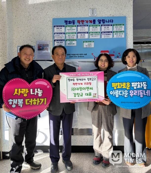 미담타임스 김준완 기자 | 안동시 평화동지역사회보장협의체는 1월 5일 ㈜대원이엔씨가 새해를 맞아 나눔 실천의 시작을 알리며 착한가게 15호점에 이름을 올렸다고 밝혔다.