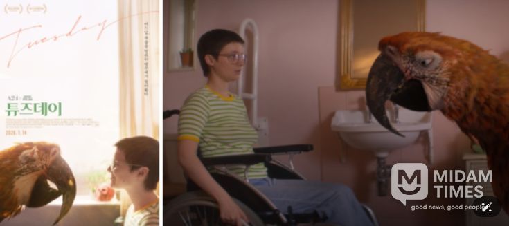 먼저 삶과 죽음에 관한 독특한 시선을 담은 영화 '튜즈데이'는 불치병에 걸린 ‘튜즈데이’와 점점 다가오는 딸의 죽음을 거부하는 엄마 ‘조라’ 앞에 모든 죽어가는 존재의 마지막 순간을 배웅하는 앵무새 ‘죽음’이 나타나며 벌어지는 A24 X BBC FILM의 독특한 휴먼 감동 판타지이다.