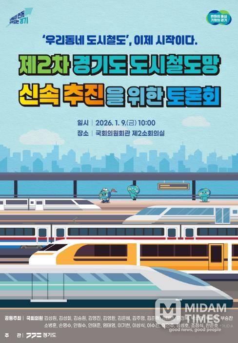 미담타임스 정주환 기자 | 경기도가 ‘제2차 경기도 도시철도망 구축계획(′26~′35)’에 반영된 사업들의 실질적인 추진 방안 논의를 위해 9일 국회의원회관 제2소회의실에서 국회토론회를 연다.