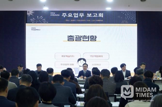 미담타임스 정인화 기자 | 천안시는 7일 시청 대회의실에서 ‘2026 주요업무 보고회’를 열고 도시 경쟁력 강화를 위한 주요 정책 방향을 논의했다.