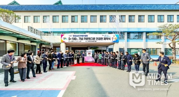 보고회 이후 참석자들은 군청 본관 현관으로 이동해 대회 D-100일 기념으로 카운트다운기 제막식을 열고, 한마음으로 대회의 성공적인 개최를 기원하며 준비 분위기를 한층 끌어올렸다.