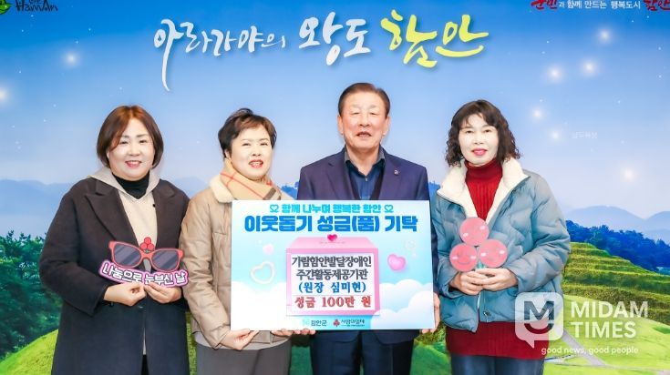 미담타임스 김교환 기자 | 함안군은 지난 8일 가람함안발달장애인 주간활동제공기관이 ‘제6회 함안애(愛)복지박람회’에서 마련한 수익금 100만 원을 지역사회에 기부했다고 밝혔다.