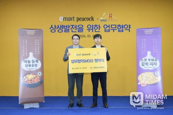이번 협약을 통해 남해군과 이마트는 1년간 다양한 협력 사업을 전개할 예정이다. 양측은 남해산 마늘을 주재료로 한 △피코크 마늘 듬뿍 닭볶음탕 △피코크 스윗 무화과 갈릭 피자 △피코크 마늘 족발 △피코크 남해마늘 저당소스 기름떡볶이 등 총 7종의 프리미엄 가정간편식 신제품을 개발한다.