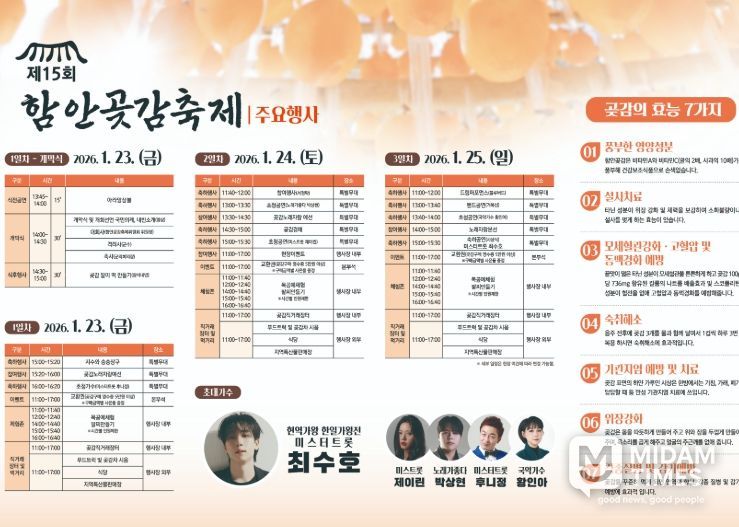 24일에는 ‘노래가 좋다’의 박상현과 ‘미스트롯’ 출신 제이린이, 25일에는 국악가수 황인아와 ‘미스터트롯’ 출신 최수호가 축하공연을 펼쳐 축제 분위기를 한층 돋울 계획이다.