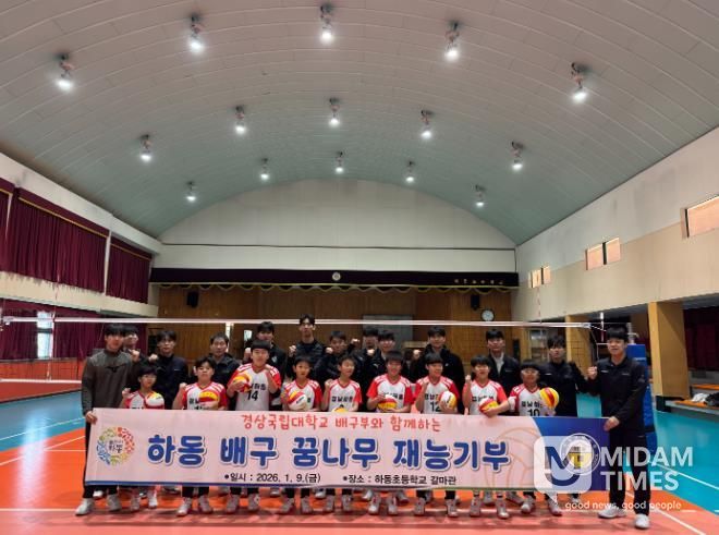 특히, 이동엽 감독과 선수들은 훈련 중에도 하동초등학교 배구선수 20여 명을 하동중학교 체육관으로 초청해 서브, 블로킹, 토스 등 포지션별 맞춤형 지도를 진행하며 특별한 재능기부 시간을 가졌다.