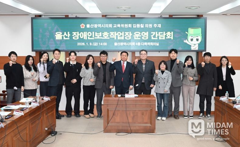 미담타임스 김준완 기자 | 울산광역시의회 김동칠 의원(교육위원회, 달동ㆍ수암동)은 1월 9일 오후, 시의회 4층 다목적회의실에서 ‘울산 장애인보호작업장 운영에 관한 간담회’를 열고, 현재 울산 장애인보호작업장 운영에서 발생하는 현안 및 문제에 대해 논의했다.