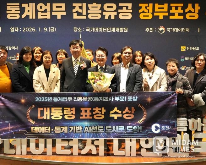 미담타임스 정인화 기자 | 춘천시가 9일 2025년 통계업무 유공을 인정받아 강원특별자치도 18개 시군 중 최초로 대통령 표창을 수상했다.