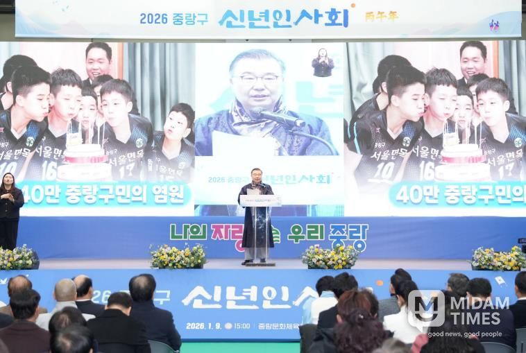 미담타임스 정주환 기자 | 중랑구가 지난 9일 오후 중랑문화체육관에서 구민 1,200여 명이 참석한 가운데 2026년 신년인사회를 개최했다.
