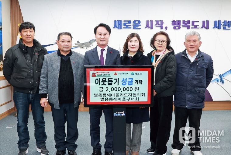 미담타임스 김교환 기자 | 사천시 벌용동새마을지도자협의회(회장 양호철)와 벌용동새마을부녀회(회장 김정란)는 지난 9일 사천시청을 방문해 지역사회의 어려운 이웃을 위한 성금 200만 원을 기탁했다고 12일 밝혔다.