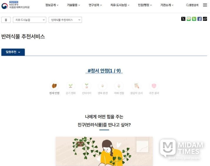 국립원예특작과학원 누리집 ‘치유·도시농업→반려식물 추천 서비스’에서 누구나 서비스를 이용할 수 있다.